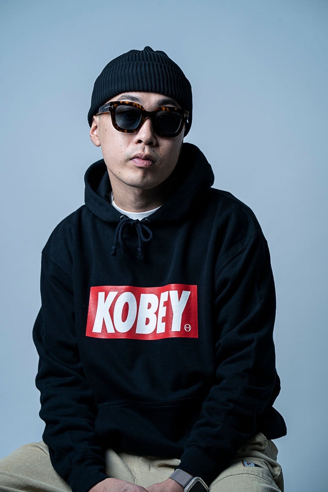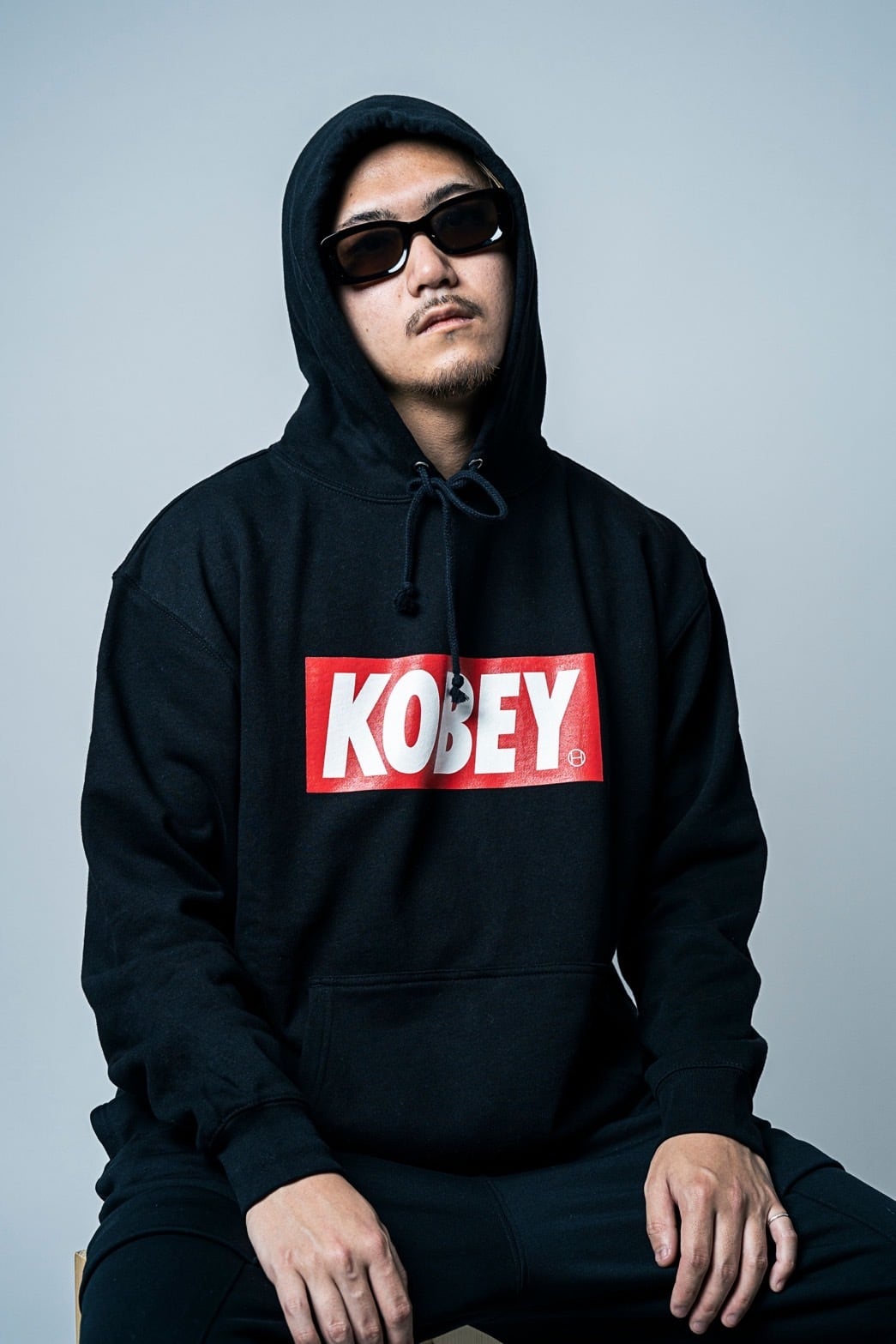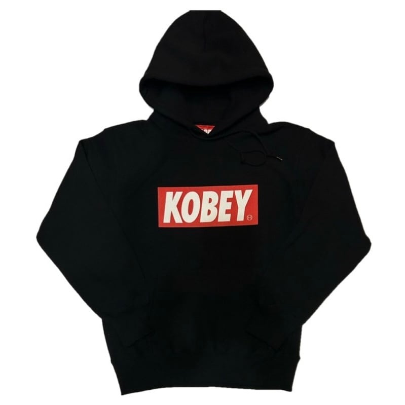 “KOBEY” RED BOX LOGO HOODIE / BLACK