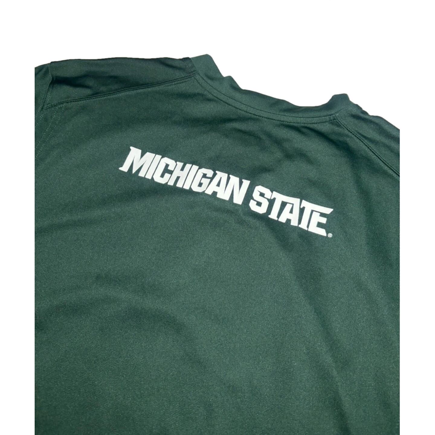 ミシガン州立大学のフットボールチーム、スパルタンズのユニフォーム、大きく描かれたスパルタの戦士がアクセント!深い緑もポイント!オールシーズン使える万能な一枚!